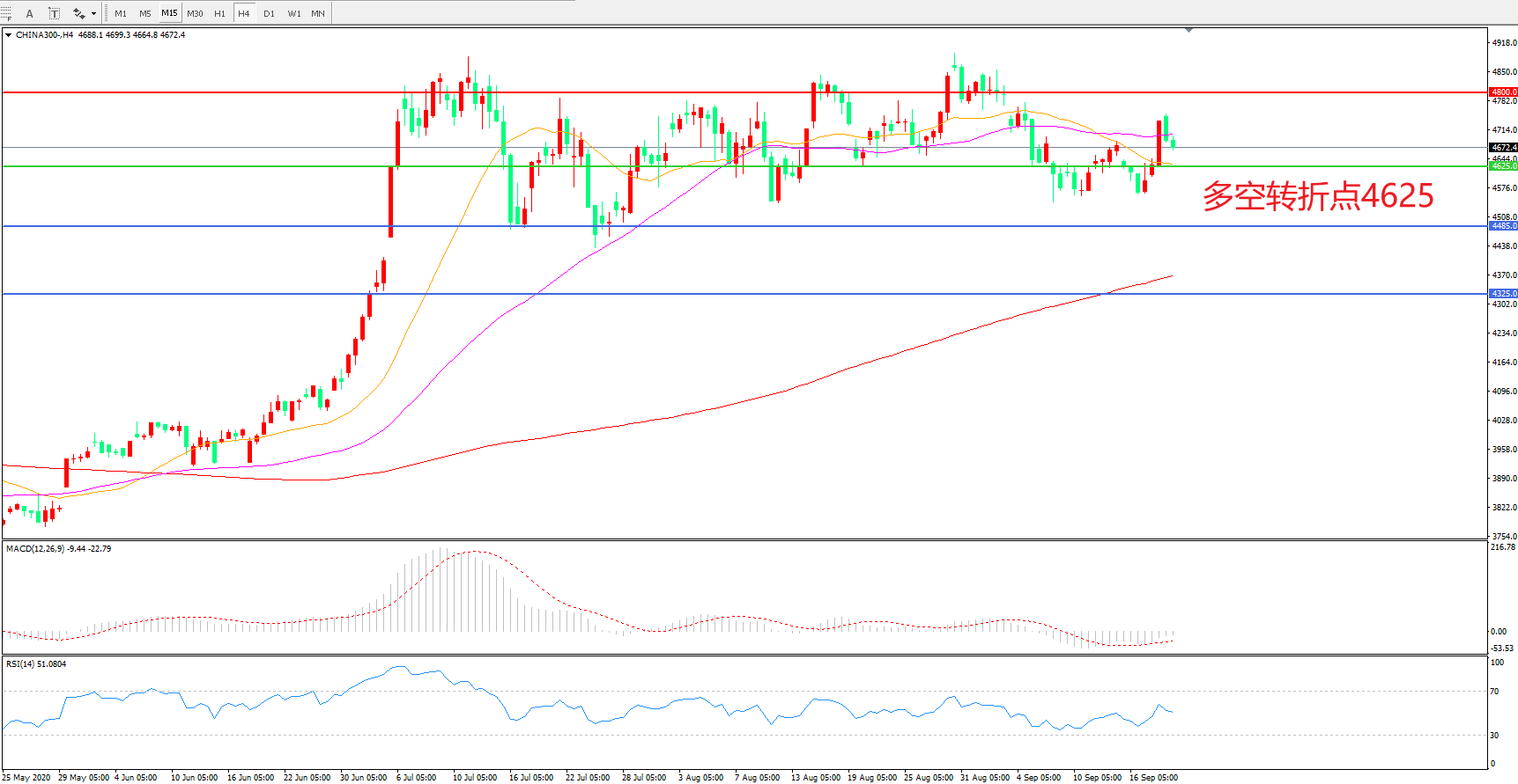 多空转折点:4625.00