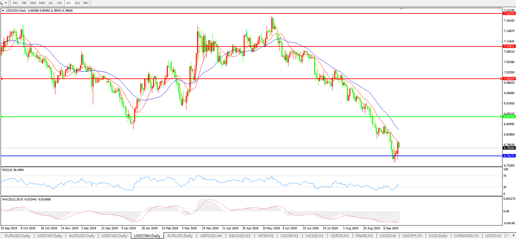 美元兑人民币USDCNH 日线图: