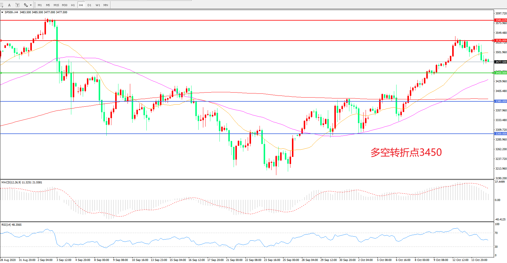 多空转折点:3450.00