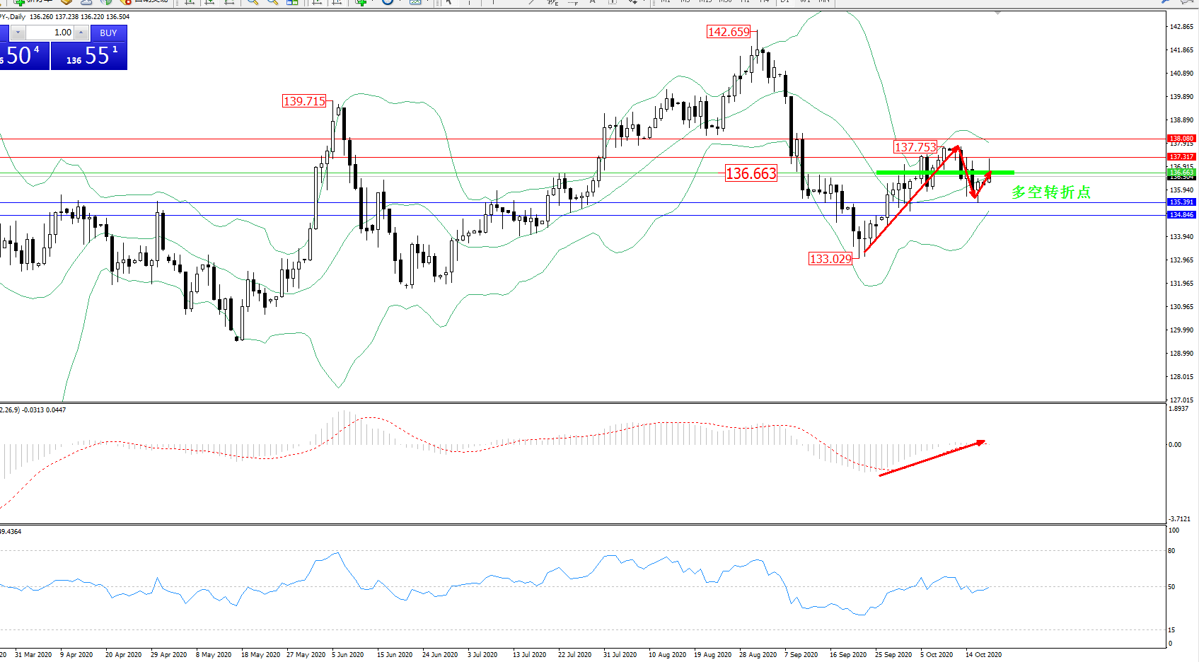 备选策略:136.663上方看涨,目标137.317、138.080