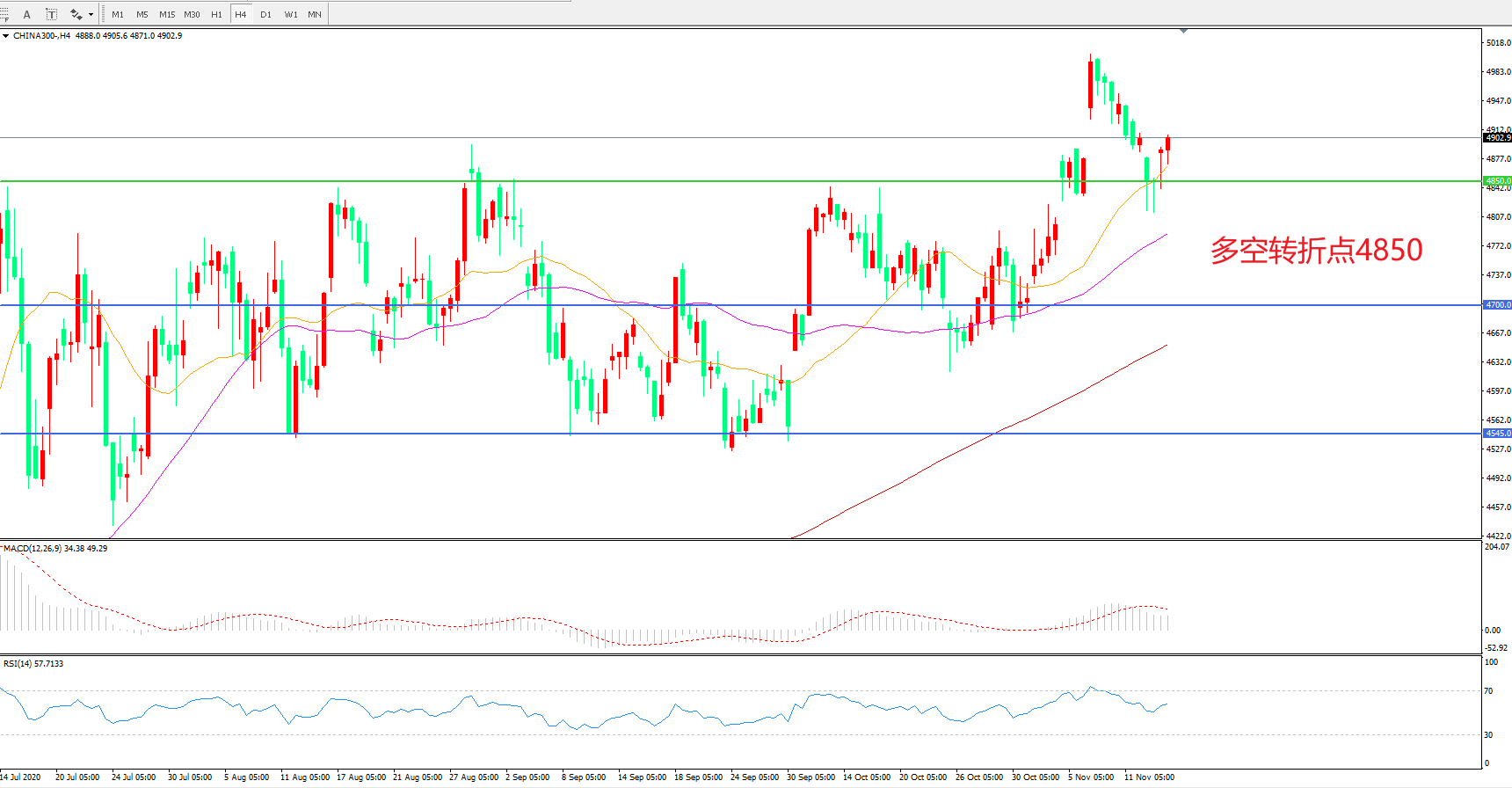 多空转折点:4850.00