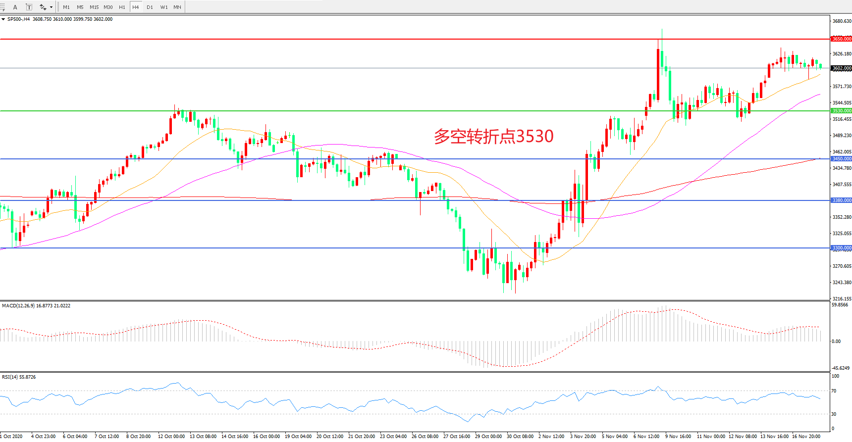 周二(11月17日),素有“恐怖数据”之称的美国零售销售数据表现不及预期,,市场担忧情绪再起,标普500延续高位震荡,收报3606.75点。美联储主席鲍威尔发言称,相比过去,美国在很长一段时间都更需要新的刺激,今后几个月可能很具挑战性。