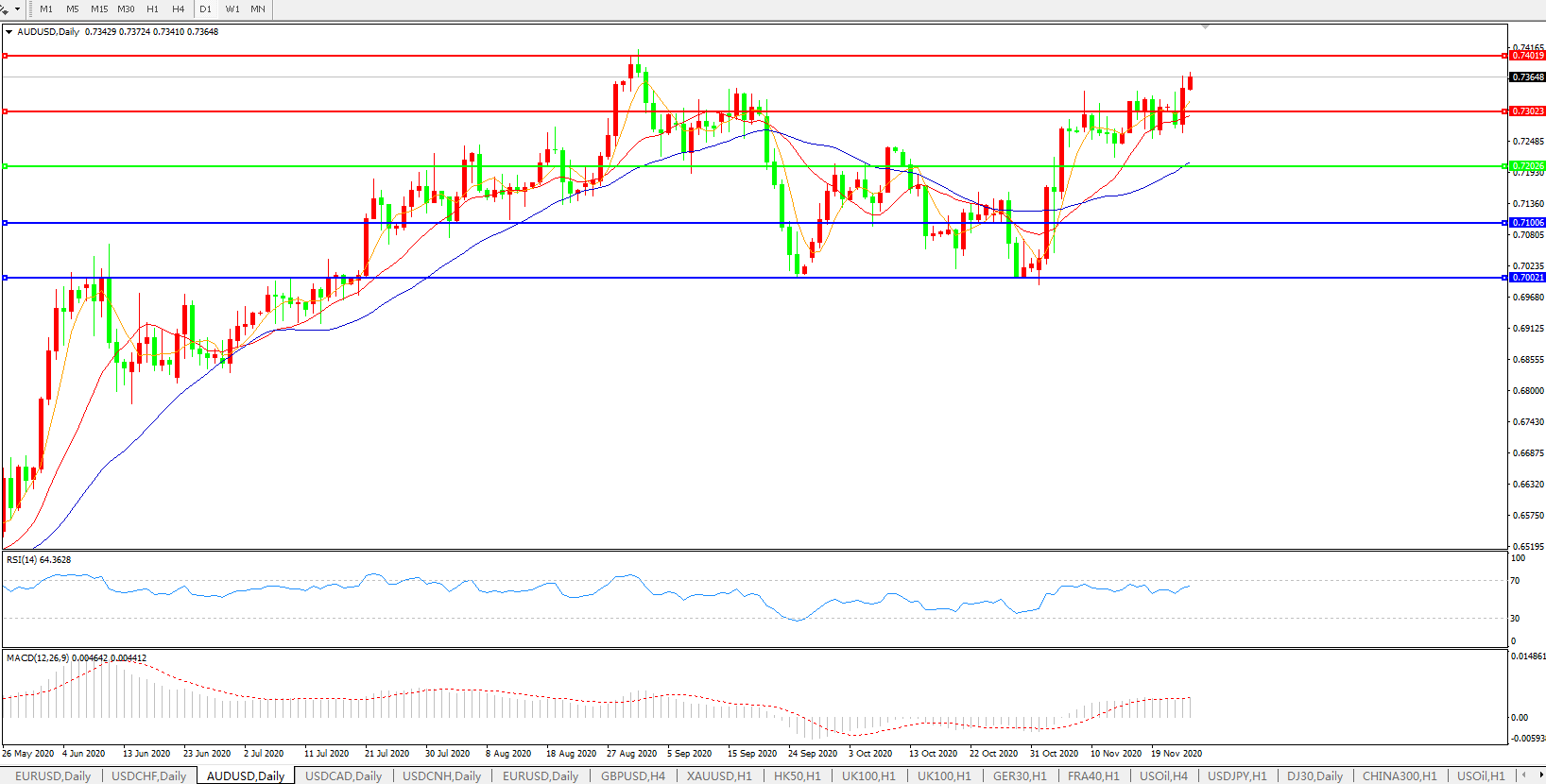 压制位:0.7300 0.7400