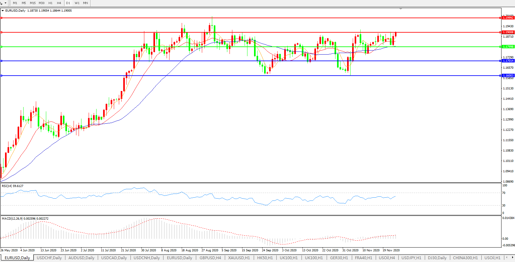 欧元兑美元重启强势,1.19关口突破在即