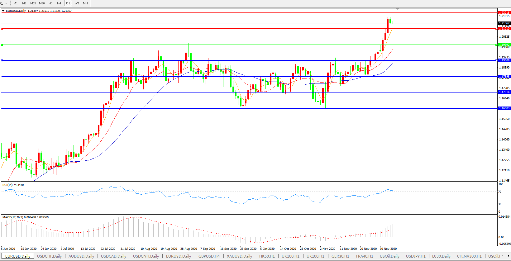 欧元兑美元EURUSD   日线图:
