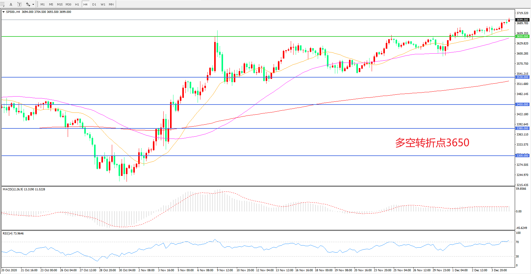多空转折点:3650.00