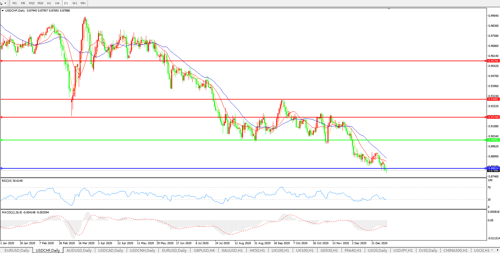 技术面简析:日线图均线有序空头排列,汇价继续小幅下探,MACD运行于0轴下方且量能持续放量,RSI再度走弱,预计短期汇价大概率将进一步弱势下行。