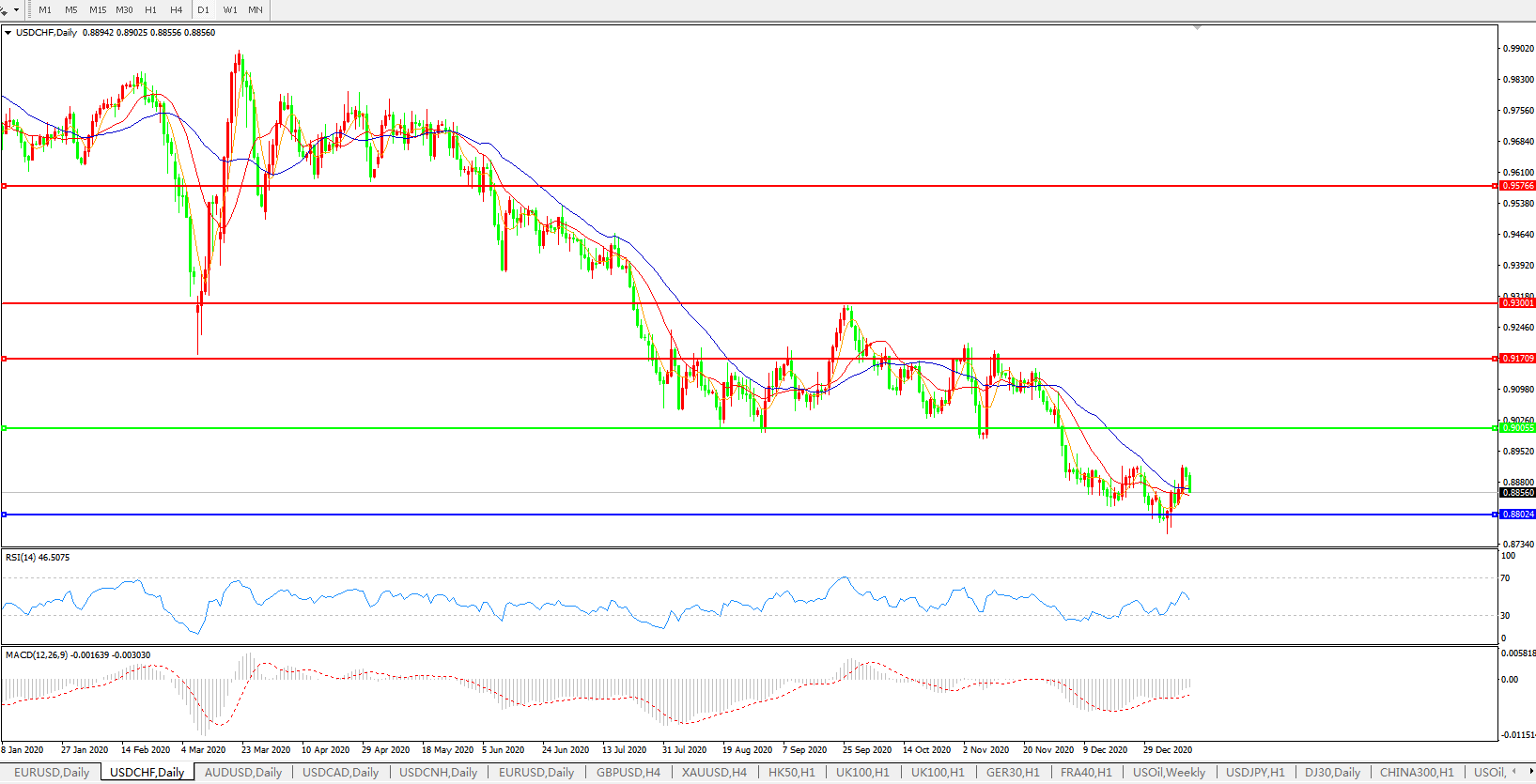 美元兑瑞郎USDCHF 日线图: