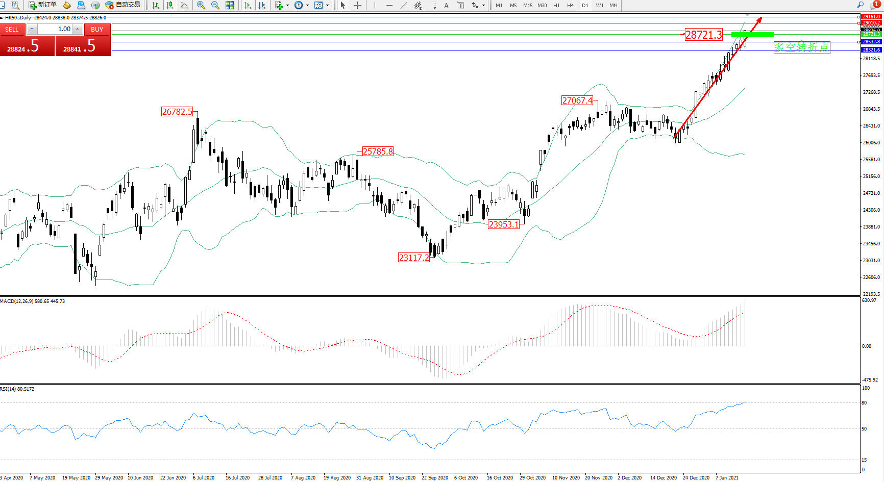 技术点评:多头动力延续布林带指标通道上轨附近持续震荡上扬态势良好,多头走势屡破新高,布林带指标呈张口走势后缓慢收口平移向上移动中,上扬态势未见止步迹象,MACD指标处于多头区域维持整理向上移动走势中,RSI指标处于多头区域震荡上扬至80均衡线附近弱势徘徊中;