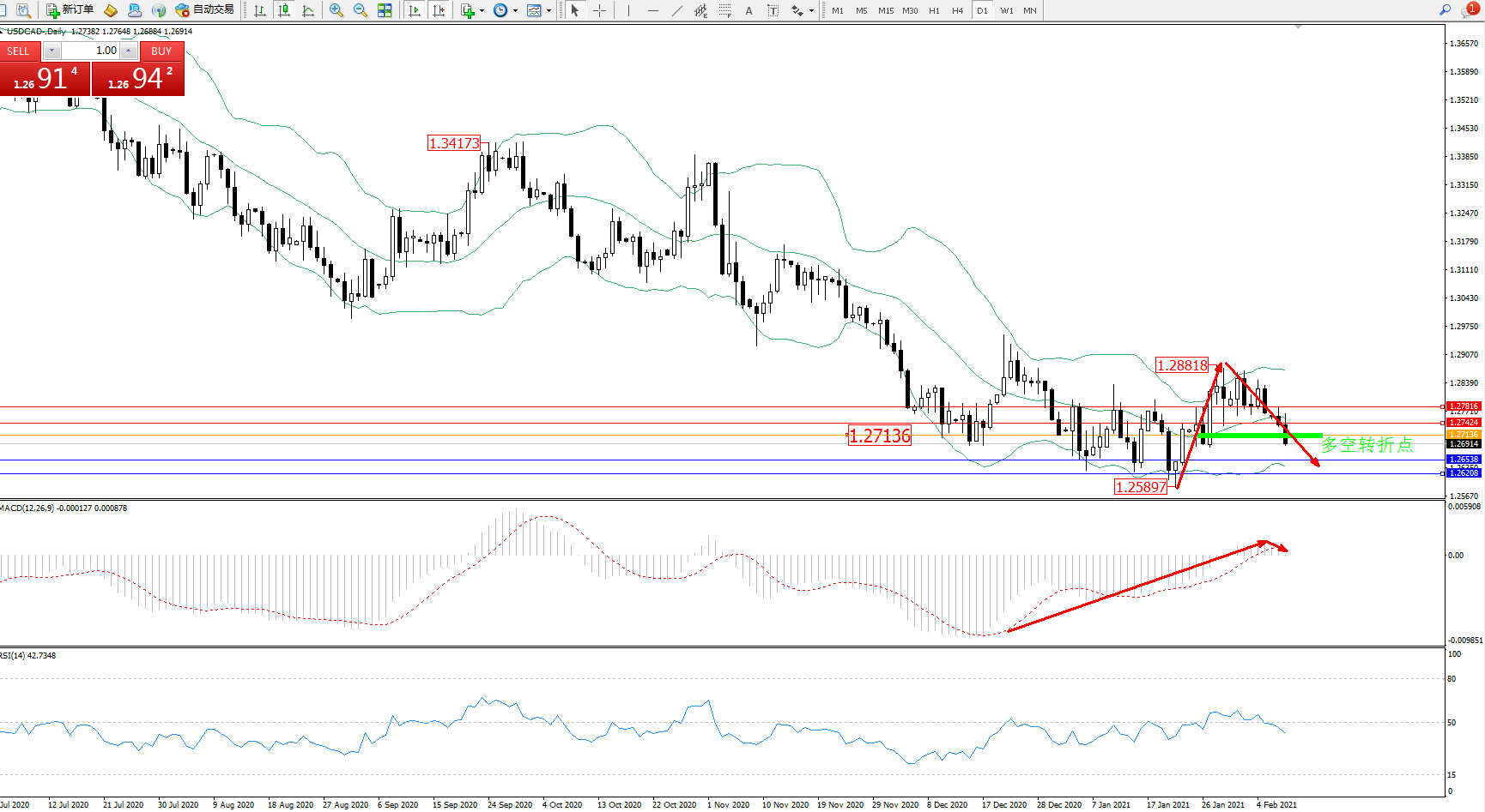交易策略:1.27136下方看跌,目标1.26538、1.26208