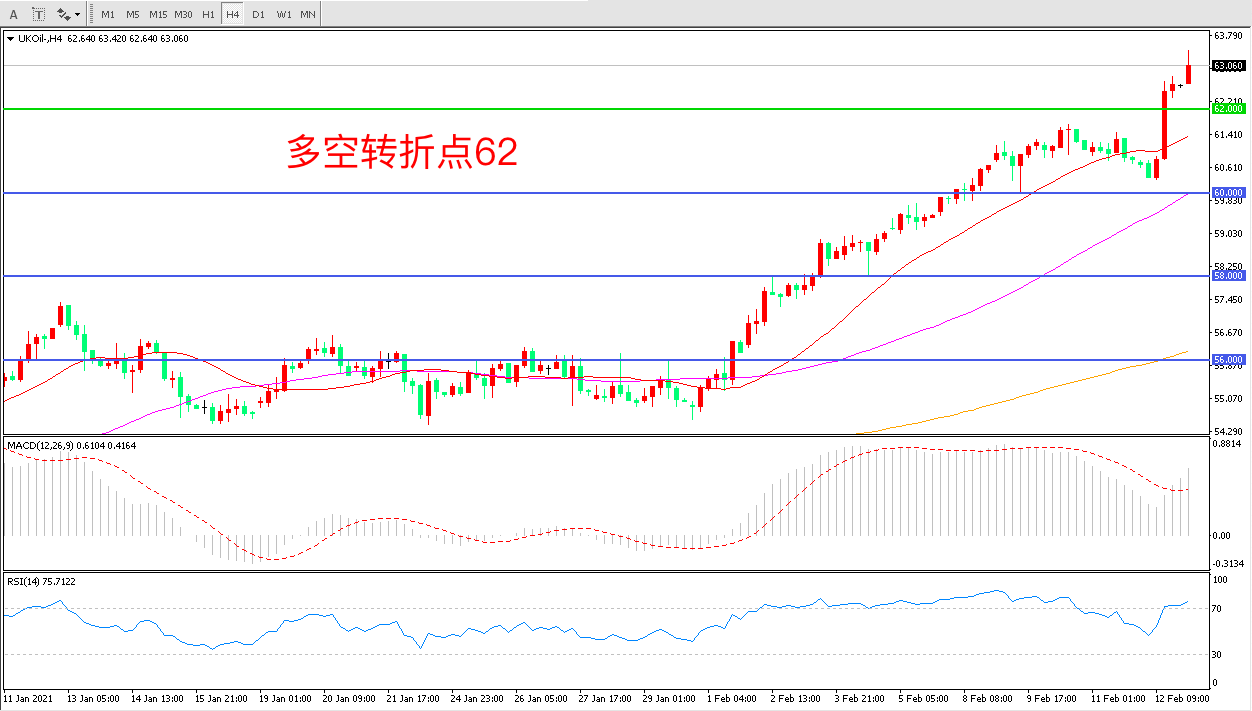 交易策略: 在62.00之上看涨,目标65.00 68.00