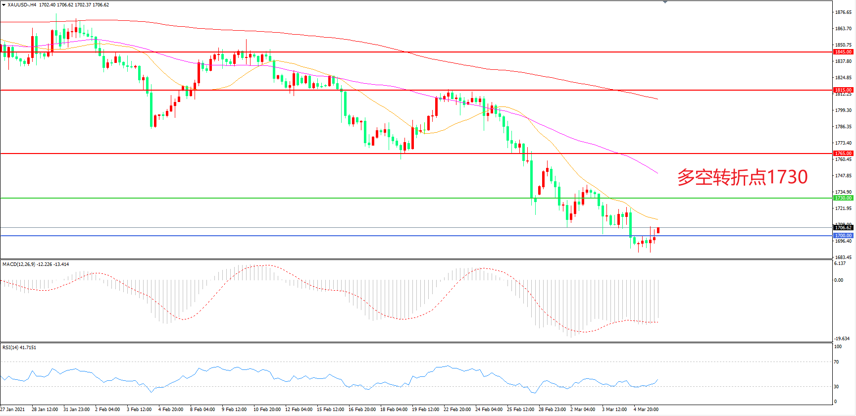 多空转折点:1730.00