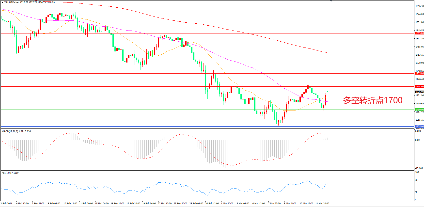 多空转折点:1700.00
