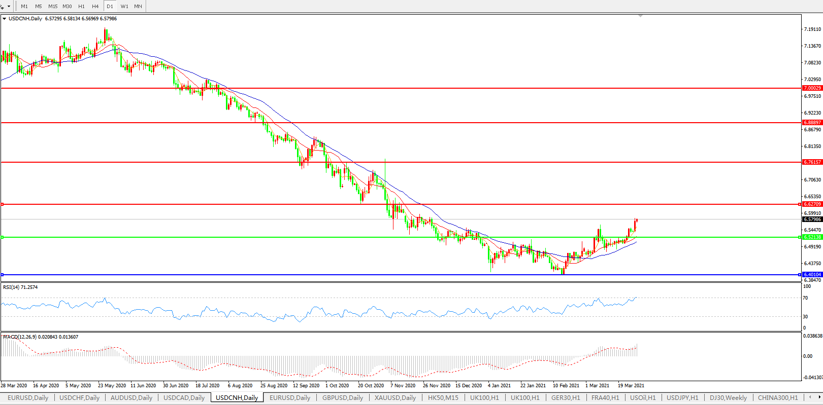 交易策略: 在6.5200之上,看涨,目标价位为6.6300,然后为6.7615。