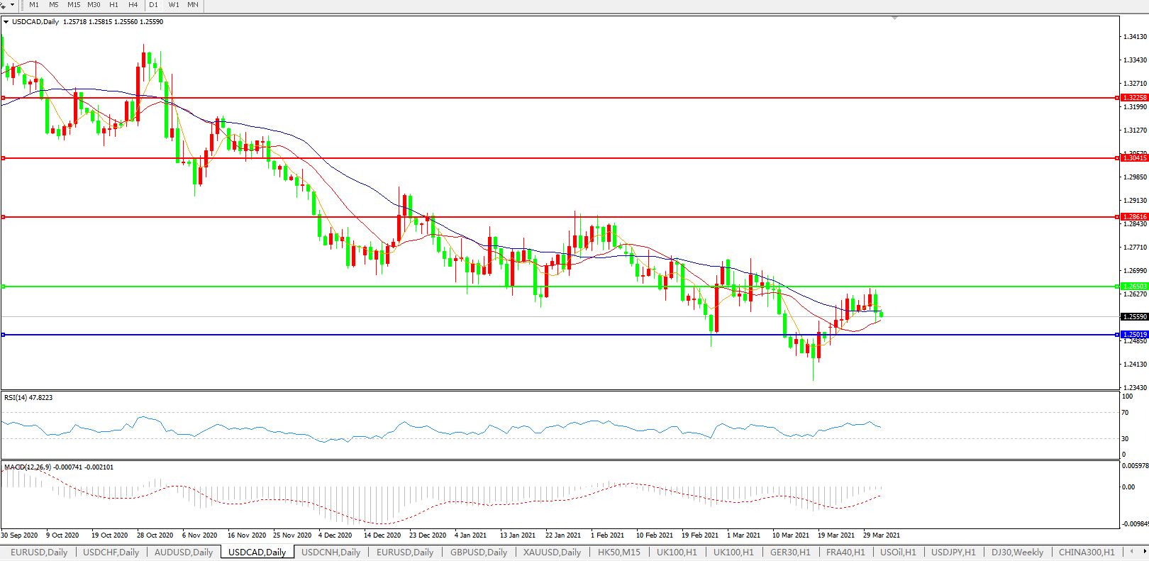 美元兑加元USDCAD    日线图: