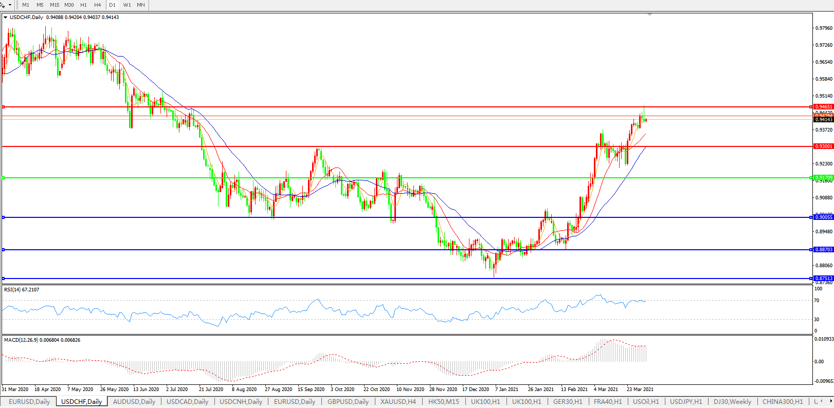 美元兑瑞郎USDCHF 日线图: