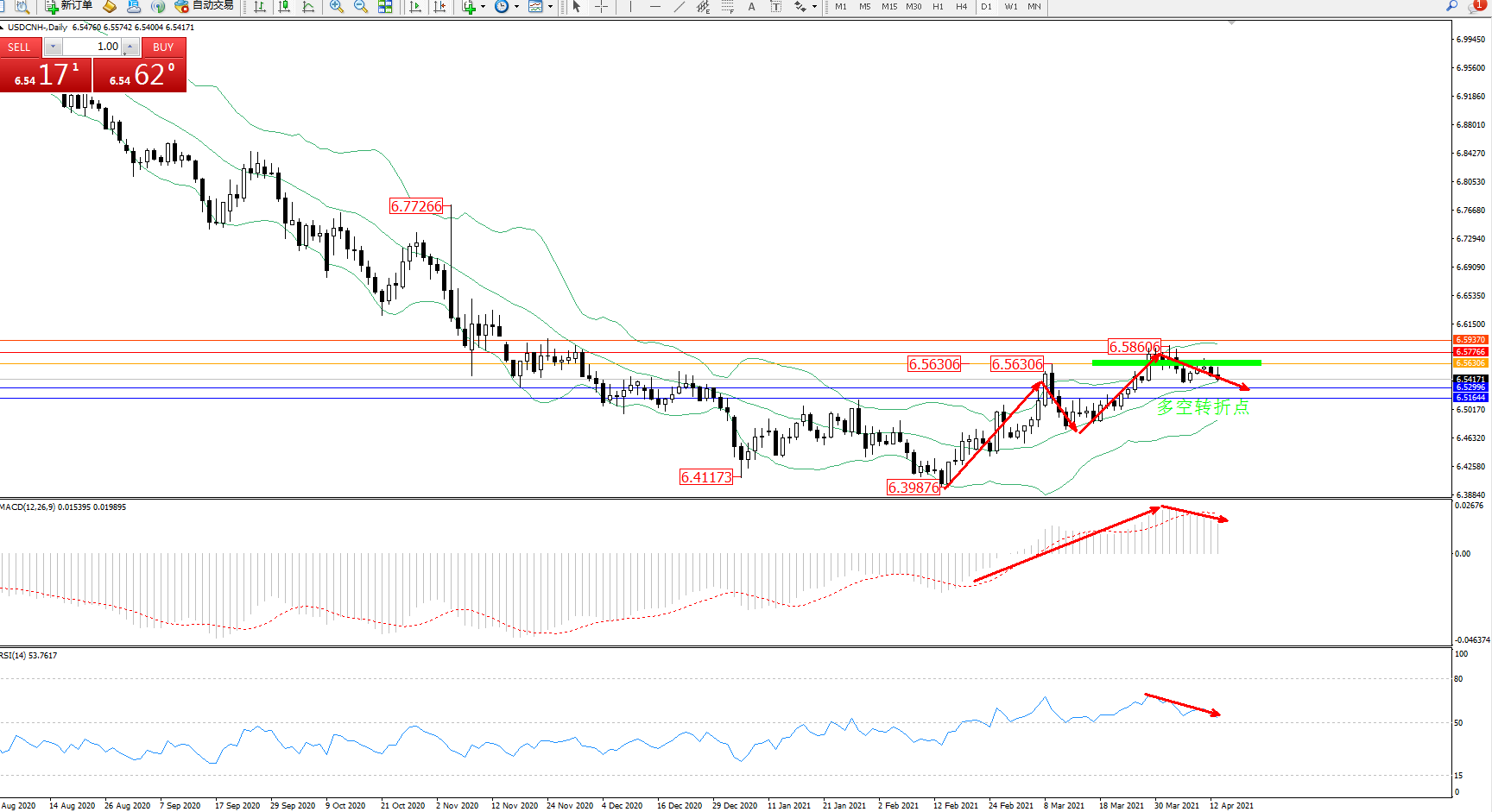 备选策略:6.56306上方看涨,目标6.57766、6.59370