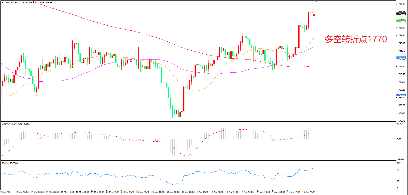 交易策略:在1735.00之上看涨,目标1770.00 1800.00