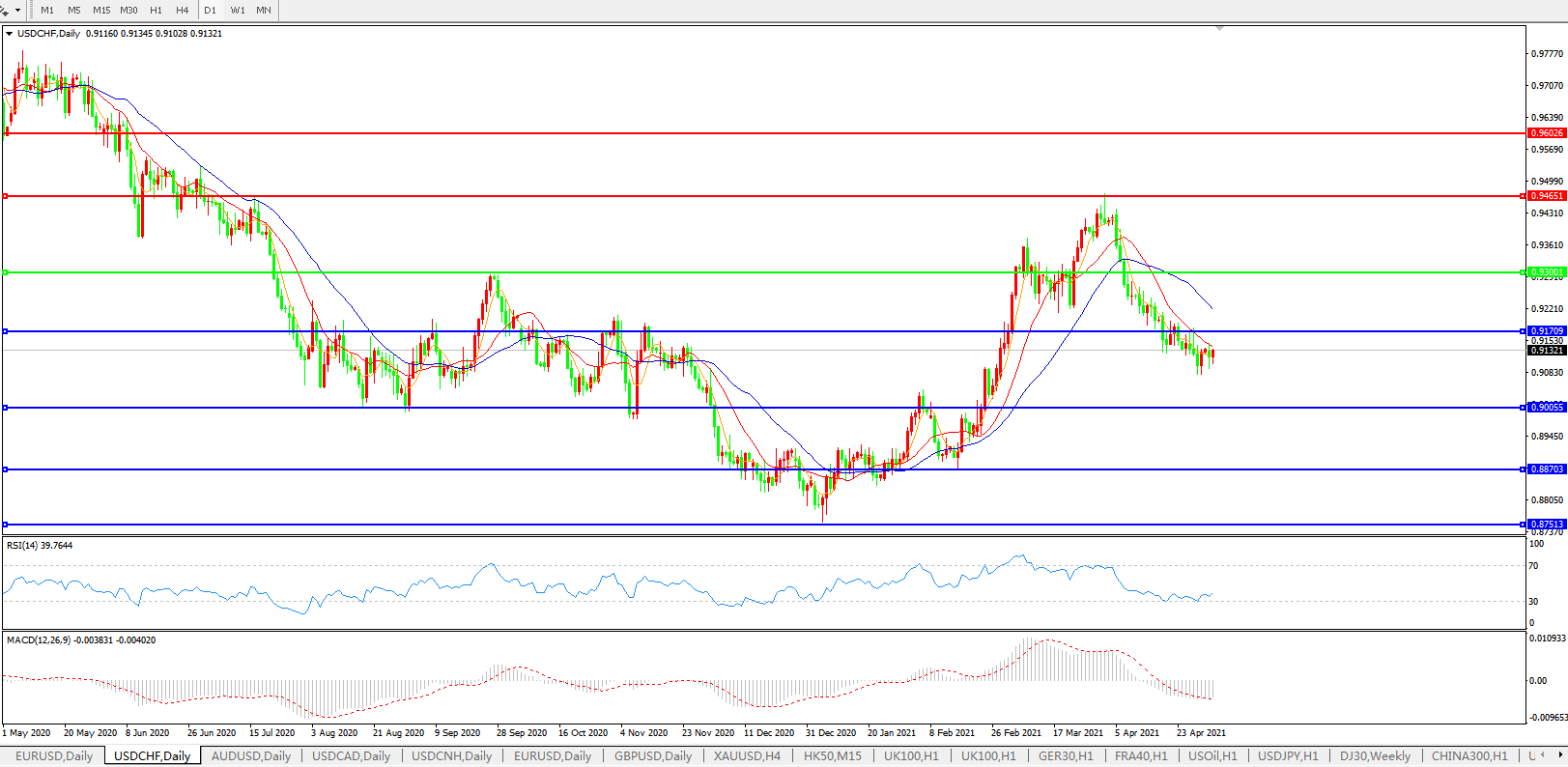 美元兑瑞郎USDCHF 日线图:
