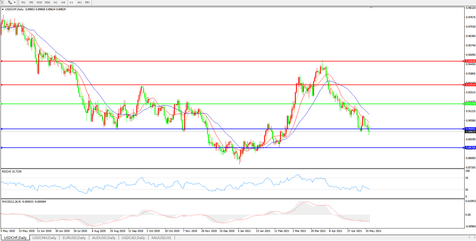 美元兑瑞郎USDCHF 日线图: