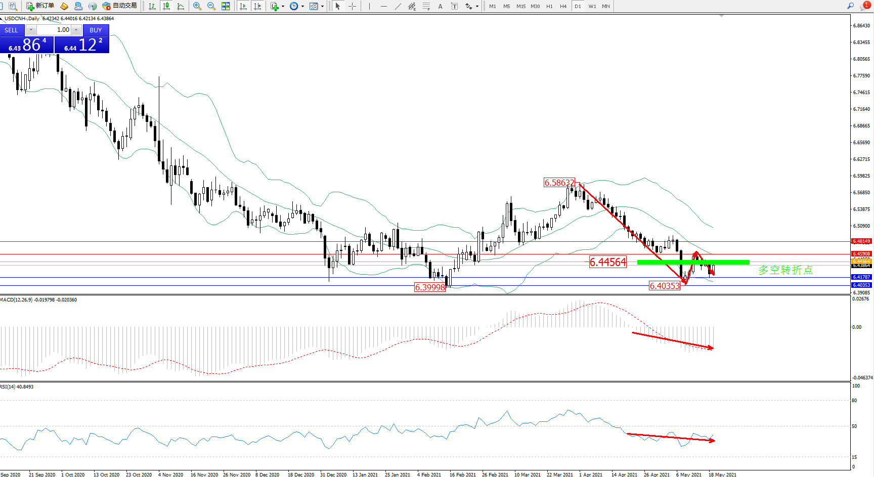 交易策略:6.44564下方看跌,目标6.41787、6.40353