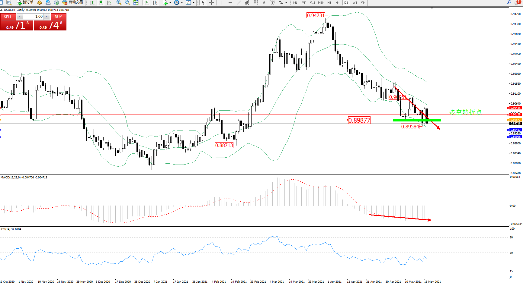 交易策略:0.89877下方看跌,目标0.89417、0.89096