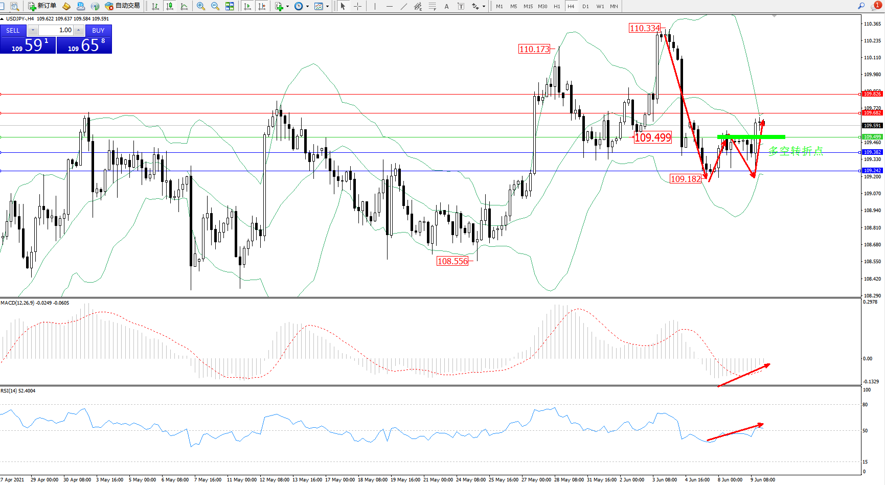 多空转折点:109.499