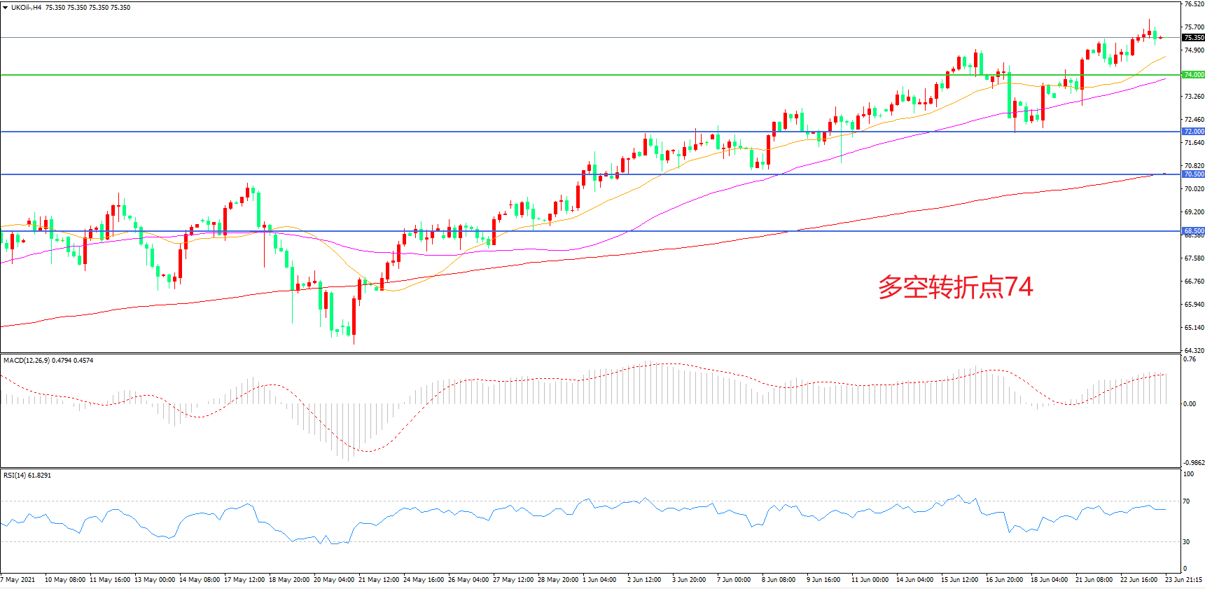 交易策略:在74.00之上看涨,目标77.00    80.00