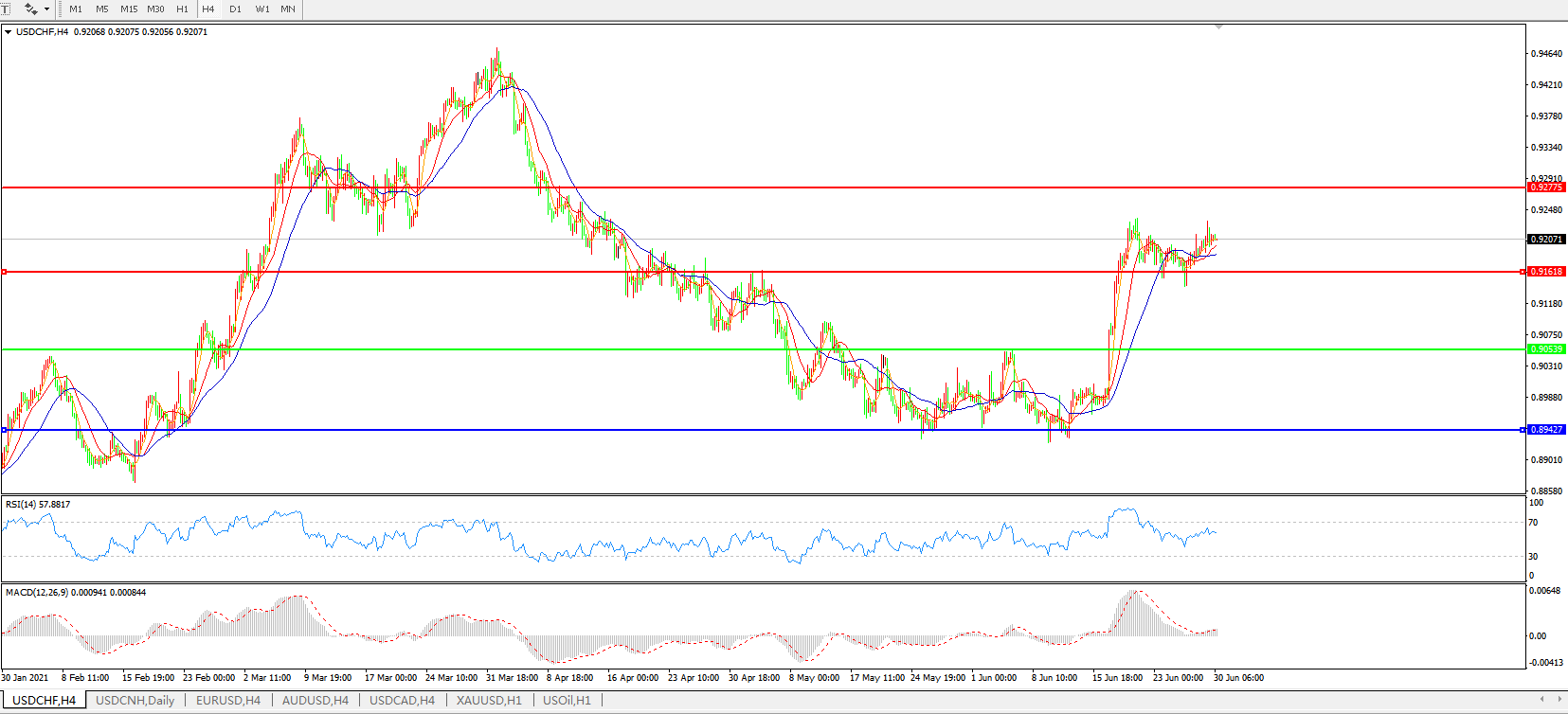 美元兑瑞郎USDCHF 4小时图: