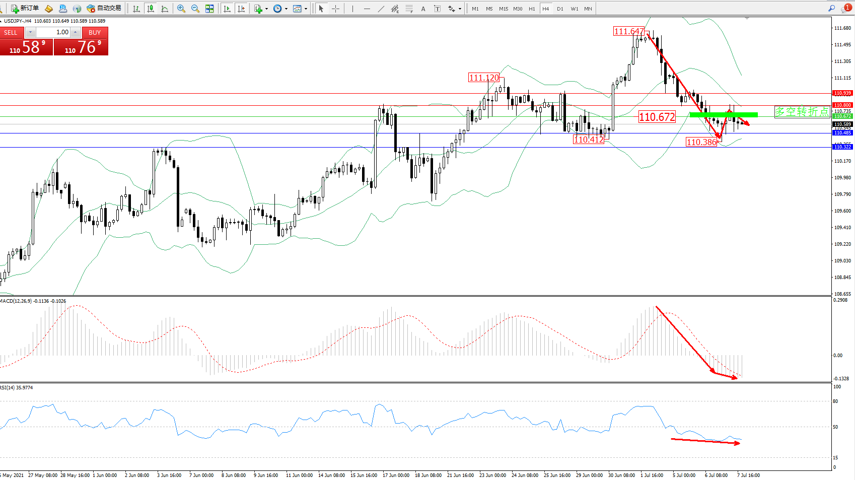 技术点评:高位空头动力持续震荡下行,抵达布林带指标下轨110.386附近后维持窄幅整理平移,下行动力开始短暂减弱,布林带指标呈下行趋势后开始收口中,MACD指标空头动力跌破0轴线进入空头区域低位持续平移中,RSI指标处于50均衡线下方空头区域弱势徘徊;