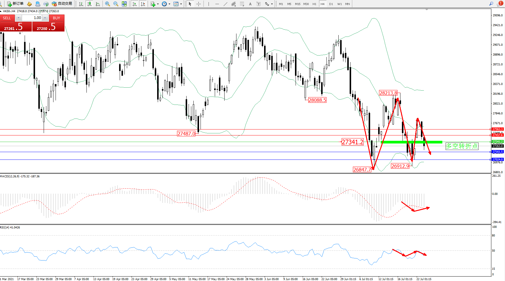 香港恒生指数7月23日(周五)收盘下跌401.86点,跌幅1.45%,报27321.98点;丨港股三大指数大幅收跌,近期热门板块近乎全挫,科技股全天表现低迷。恒生科技指数跌2.96%报7268点。大型科技股齐跌,快手大跌近11%再刷上市新低价,小米、腾讯、美团、百度皆跌超2%。今日大市成交额为1395亿港元,南下资金净流出25.18亿港元。受网传文件影响,港股教育股午后2点多集体暴跌,其中,新东方在线(1797.HK)暴跌28%报5.92港元。中金此前下调新东方在线目标价70%至12.2港元。不过,就在教育股下午暴跌前(下午2点),有香港券商建议现价买入新东方在线,认为公司是教育培训行业龙头,风险已经释放充分,未来极大概率会生存并充分分享行业红利。