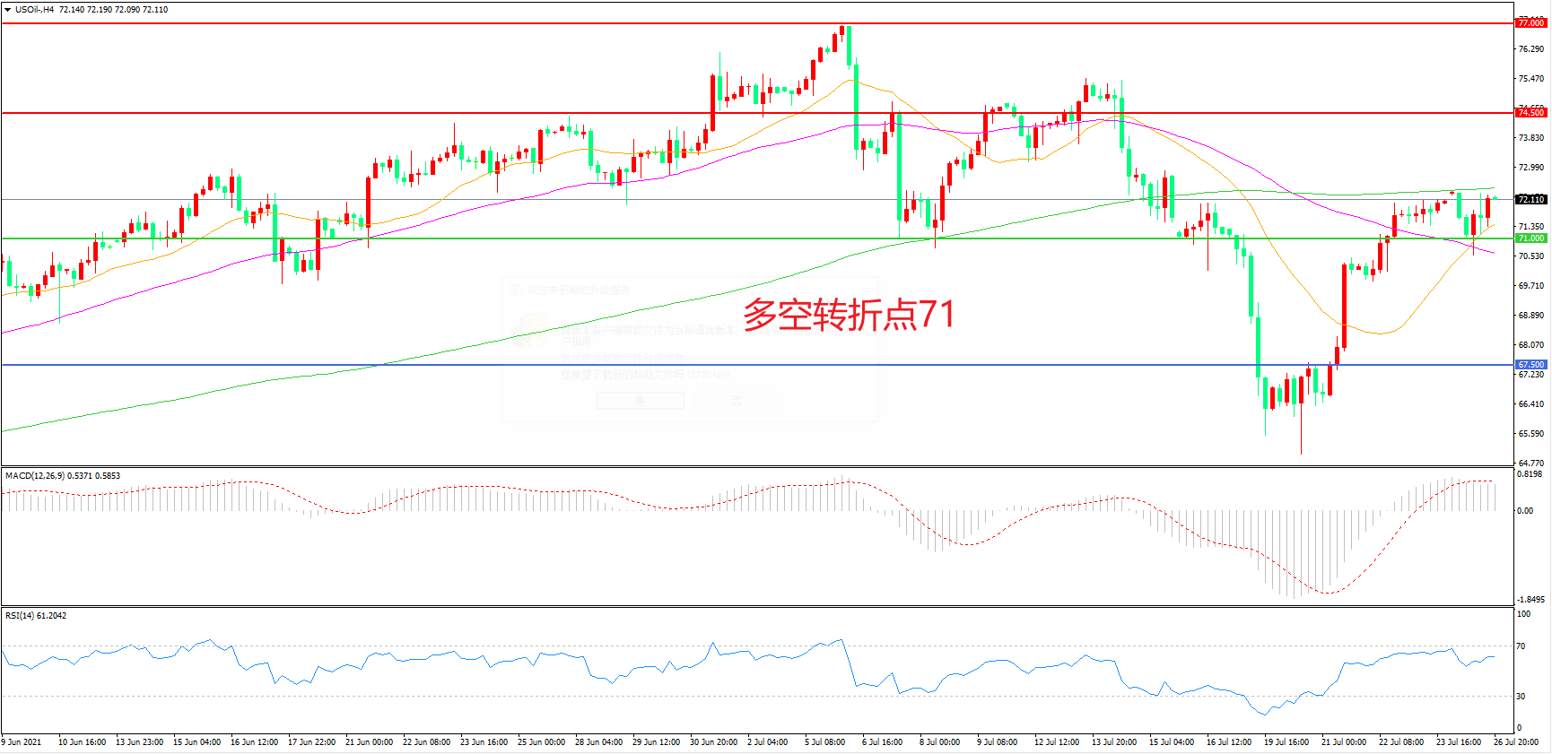 多空转折点:71.00