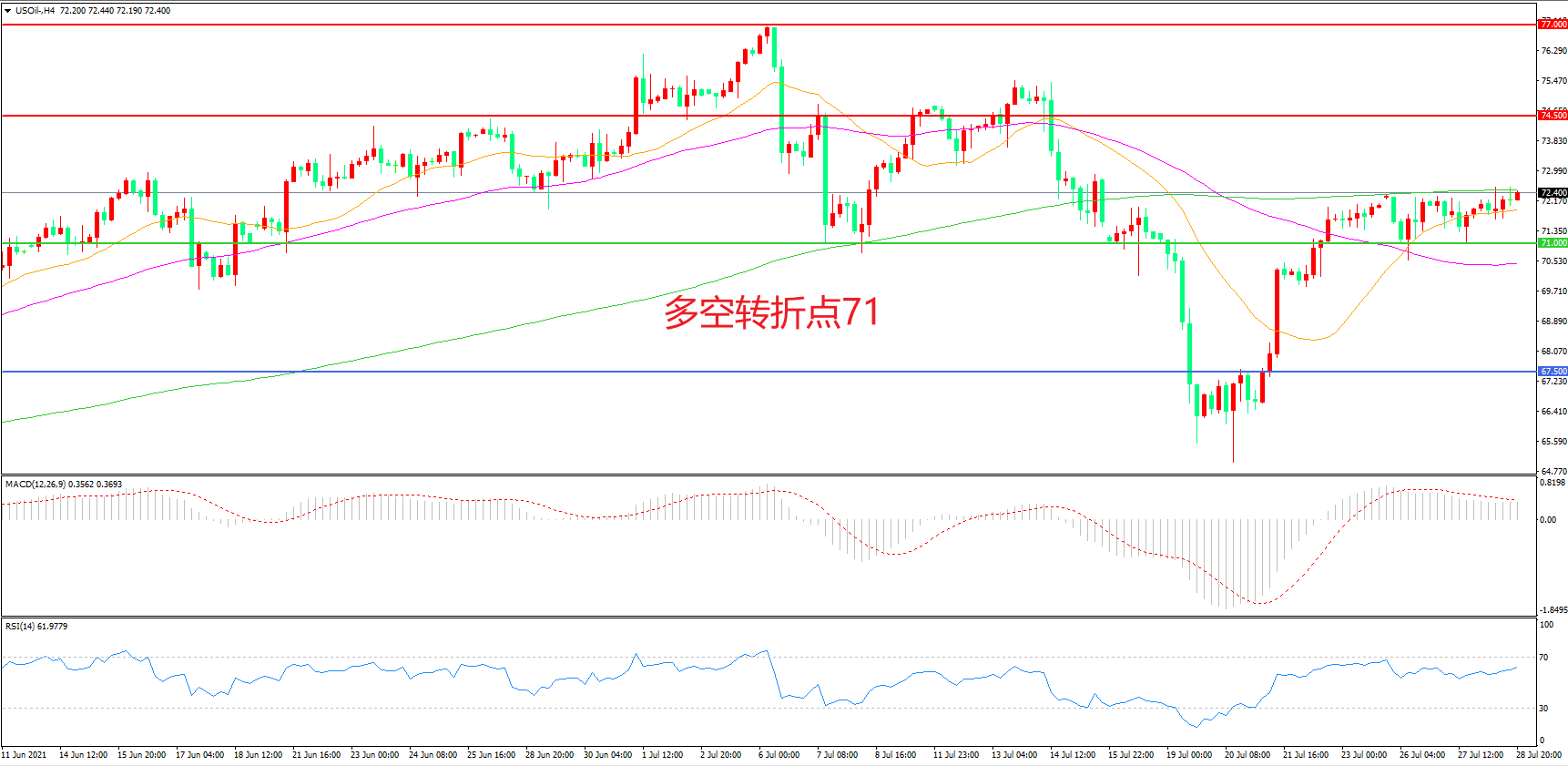 多空转折点:71.00