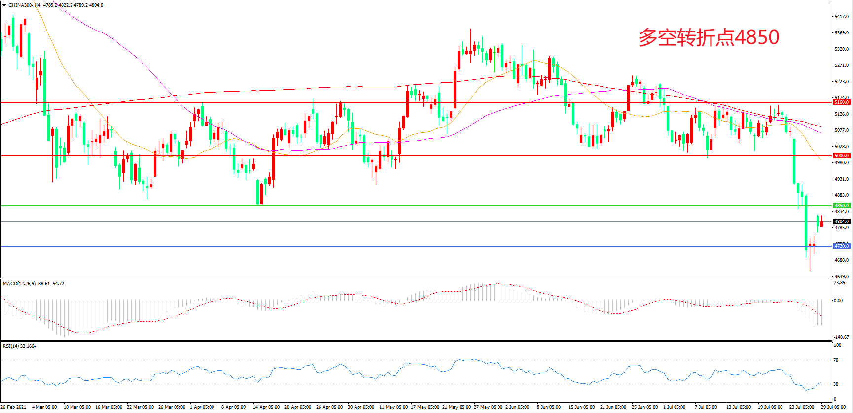 多空转折点:4850.00
