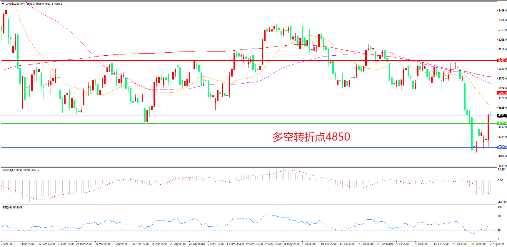 多空转折点:4850.00