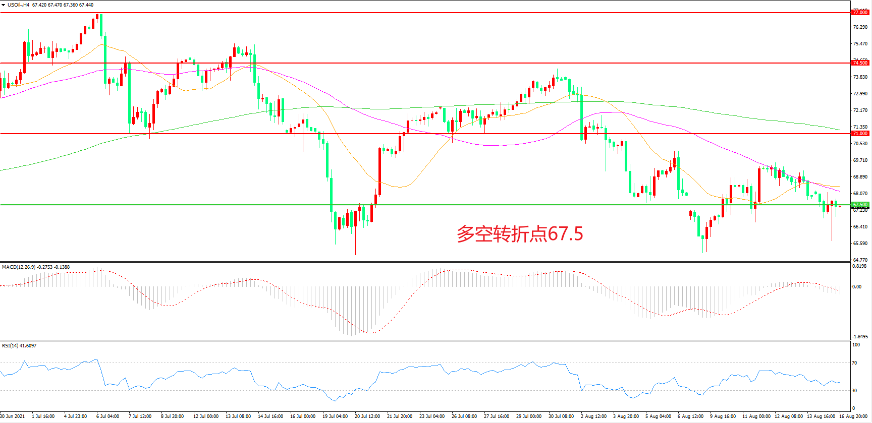 交易策略:在67.50之下看跌,目标64.00       60.00