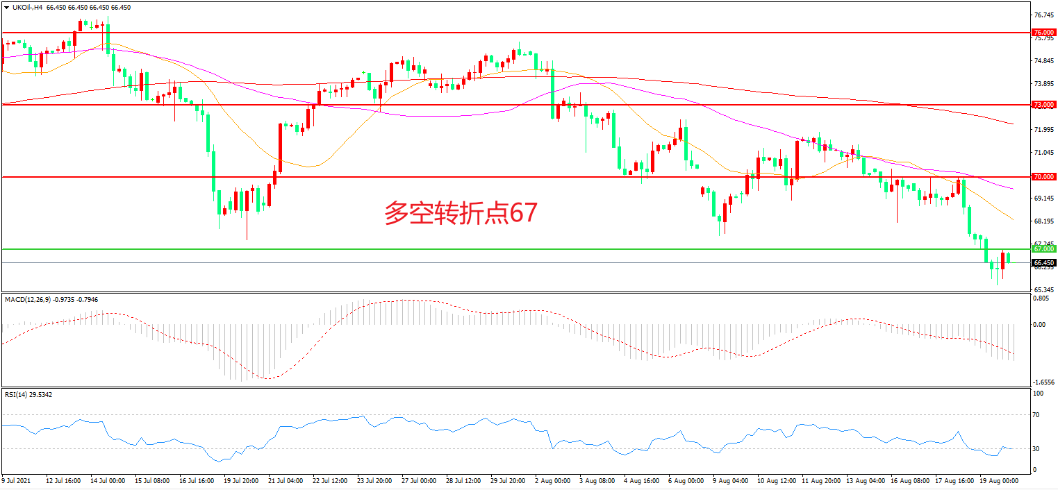 交易策略:在67.00之下看跌,目标63.00               60.00
