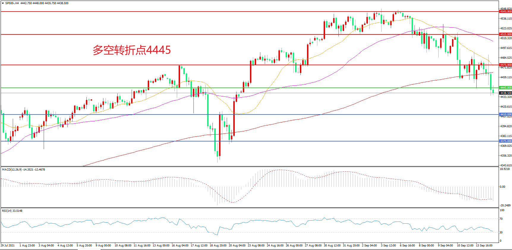 多空转折点:4445.00
