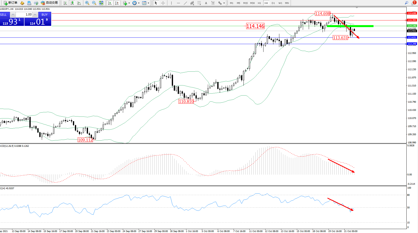 交易策略:114.146下方看跌,目标113.631、113.348