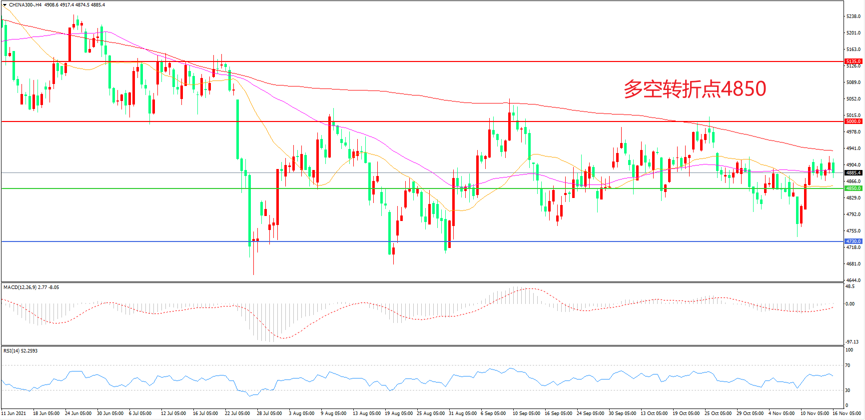 多空转折点:4850.00