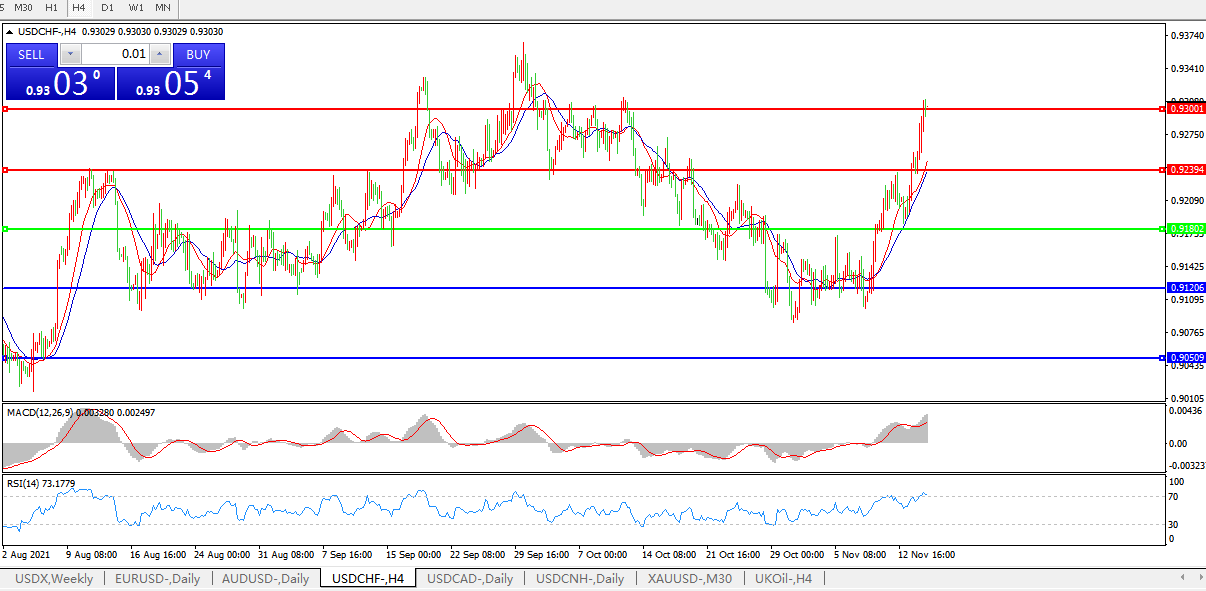 美元兑瑞郎USDCHF 4小时图: