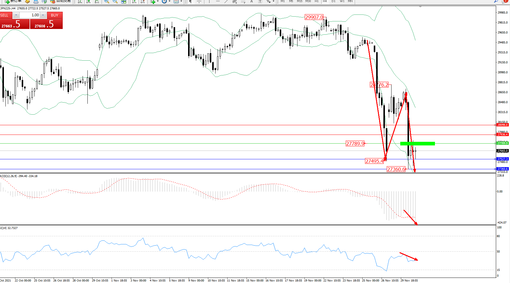 交易策略:27789下方看跌,目标27527、27360