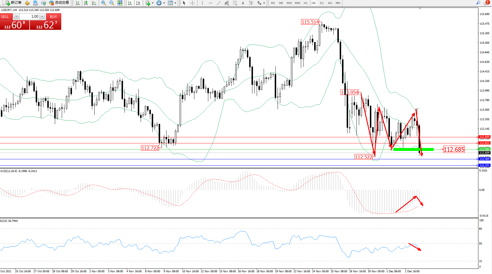 交易策略:112.685下方看跌,目标112.469、112.331