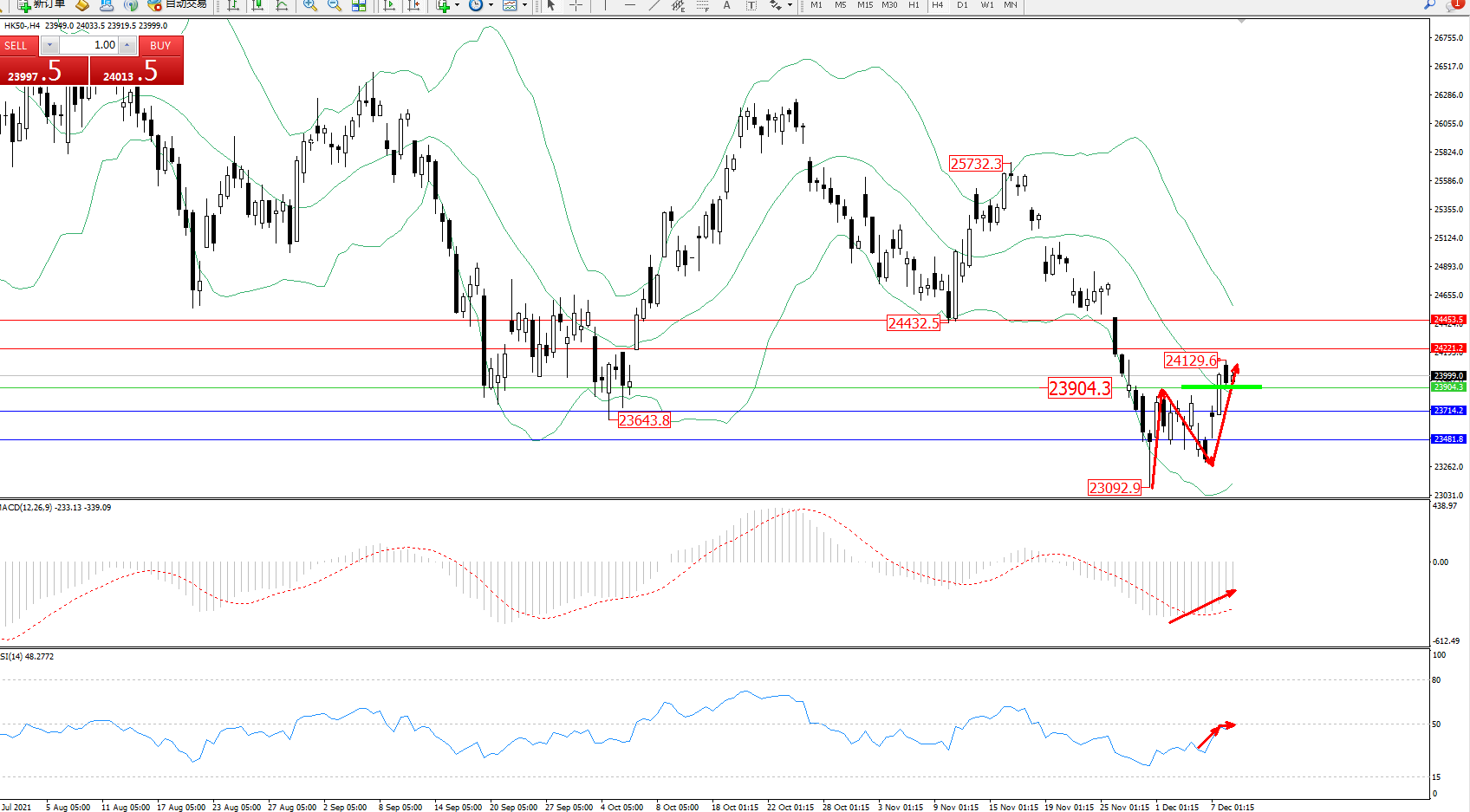 香港恒生指数12月8日(周三)收盘上涨13.21点,涨幅0.06%,报23996.87点;港股三大指数全天呈窄幅震荡走势,恒生科技指数涨0.03%。昨日领衔反弹的科技股多数下跌,阿里巴巴跌4.66%,百度跌2%,网易跌1.88%,腾讯小幅上涨;电力股再度活跃,中国电力、华能国际电力涨幅居市场前列,今日大市成交额为1161亿港元,南下资金净流入32.92亿港元。据央视,香港特区政府公布新一份《长远房屋策略》报告。报告指出,未来10年香港总房屋供应目标维持在大约43万个单位,公私营房屋比例也维持在7:3。报告还指出,要重建石篱中转屋、房委会辖下的4个工厂大厦、西环邨以及马头围邨,预计建成后可提供大约14000个单位住房。