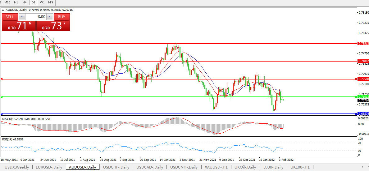 备选策略:0.7100上方看涨,目标0.7250、0.7400