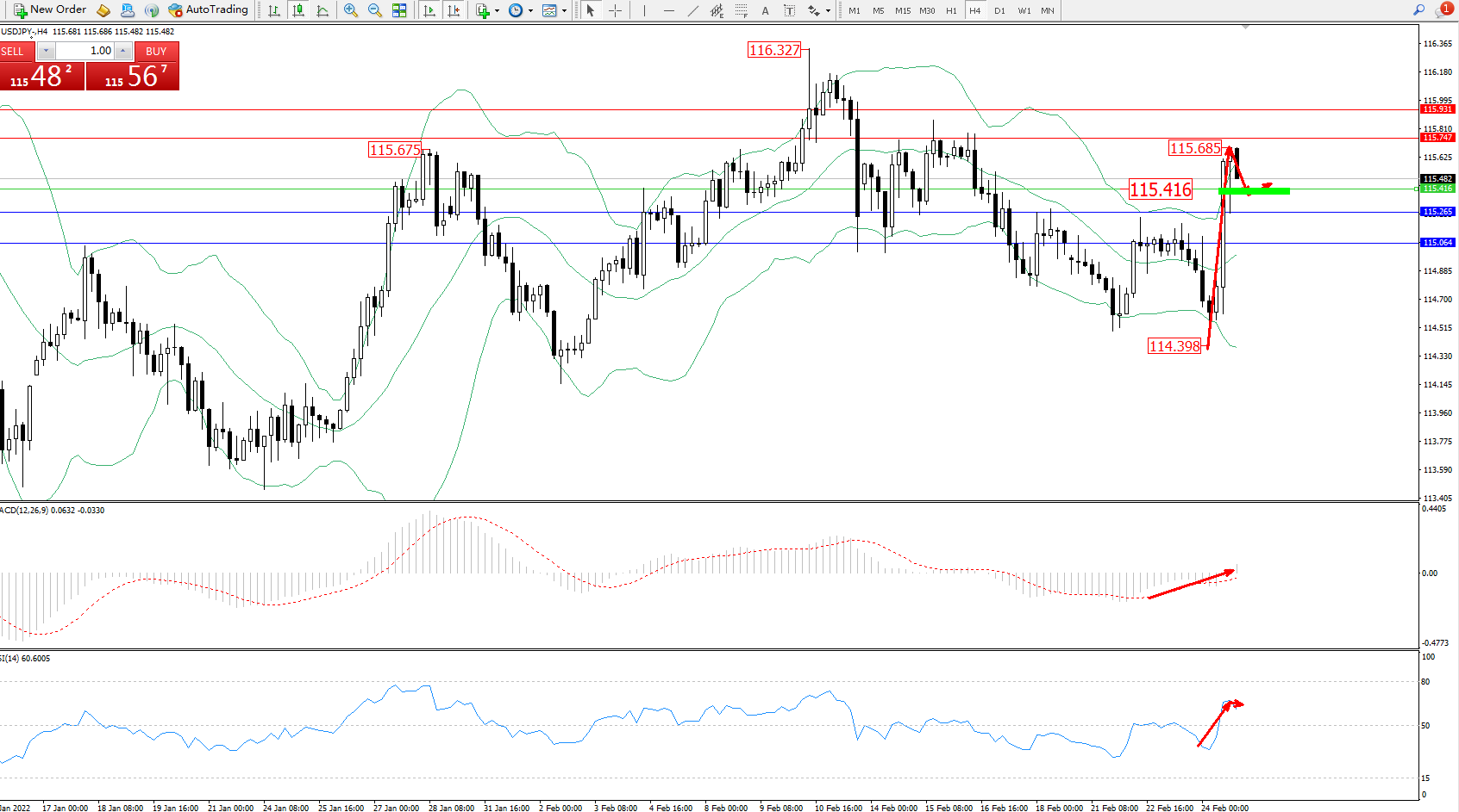交易策略:115.416上方看涨,目标115.747、115.931