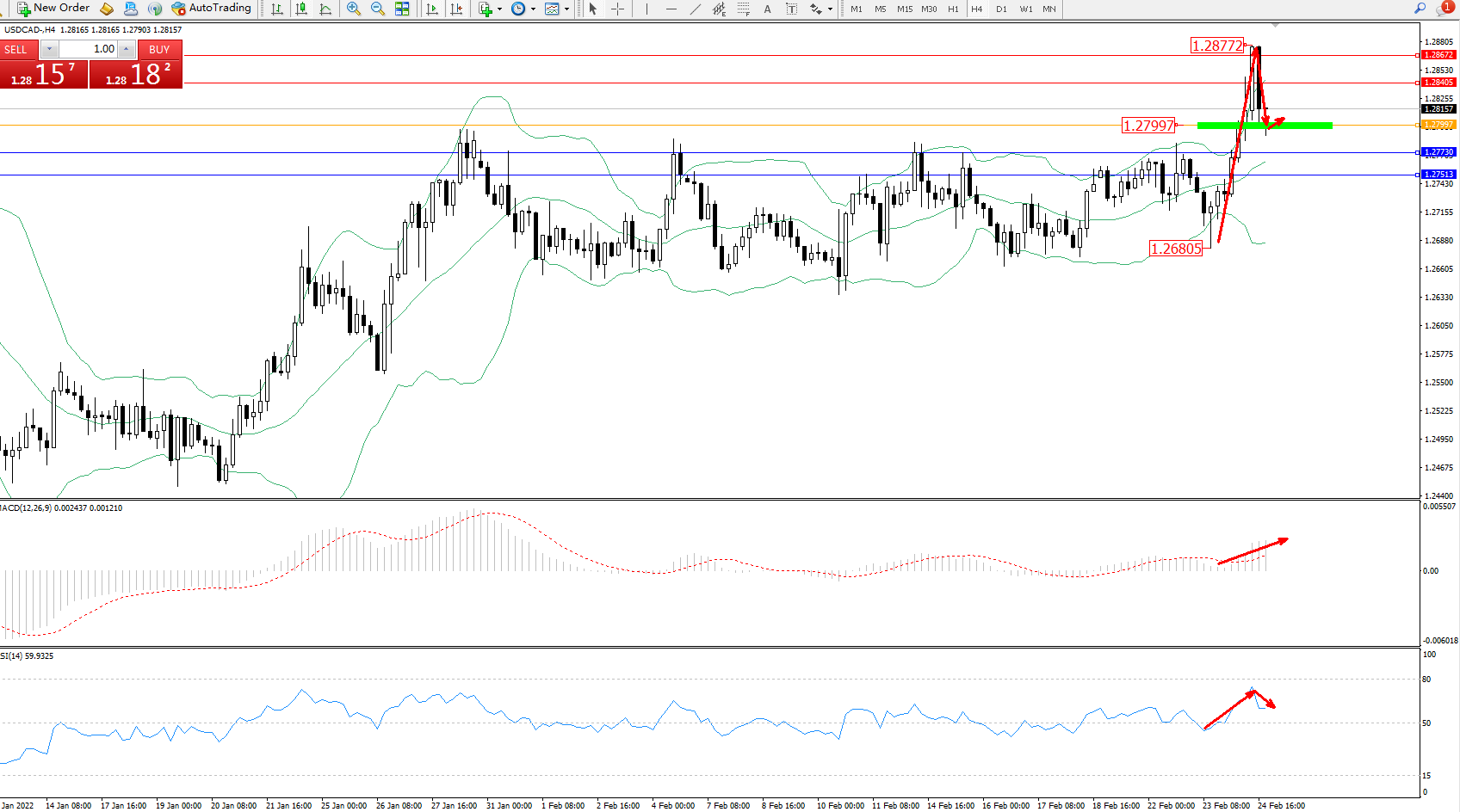 美元加元USDCAD——4小时K线图显示: