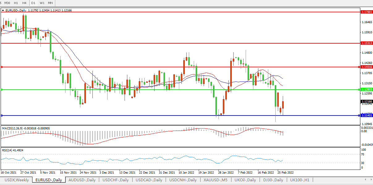 交易策略:1.1280下方看跌,目标1.1140、1.0600
