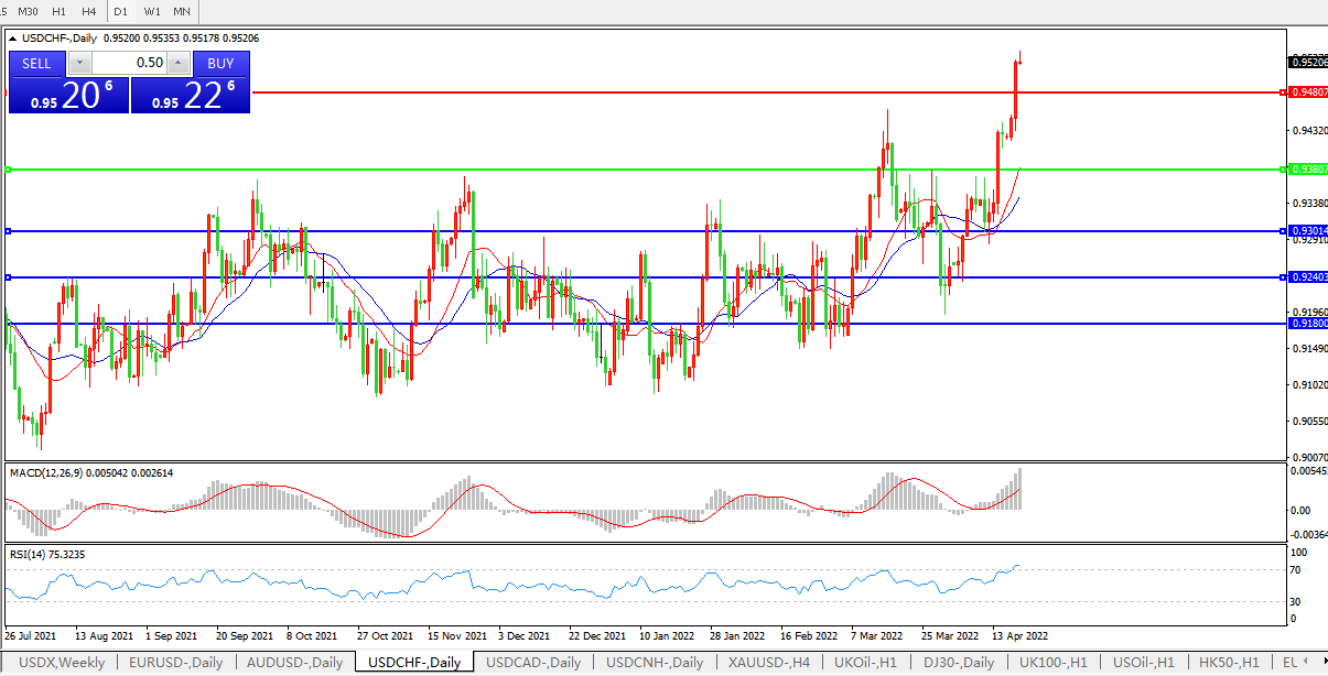 美元兑瑞郎USDCHF 日线图: