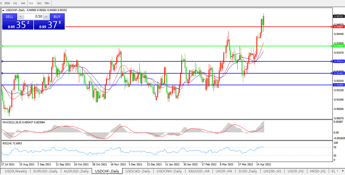 美元兑瑞郎USDCHF 日线图: